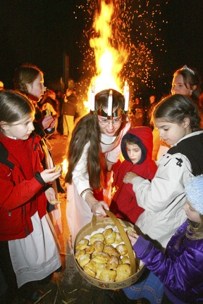 As darkness settled in, Graves said the only remaining obstacle was the arrival of the Lucia Bride and her torchlight procession to ignite the bonfire.