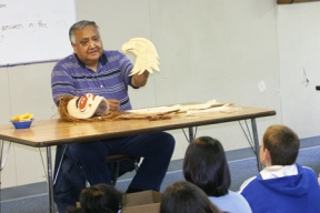 Following an schoolwide assembly to kick off the festivities, 30 minute breakout sessions took place covering topics from carving, traditional dancing, traditional foods and plants, weaving, storytelling and drum making. Each student attended four of the six sessions offered.