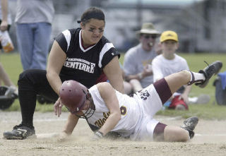 With one out, Heather True hit into a fielder’s choice, but the catcher threw the ball away down the right-field line and two runs scored.
