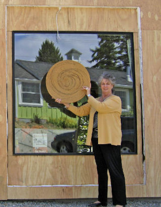 Contractor Joe Michak and his assistant Scott Trueb will finish the project this month, and Rodgers will have the doors open on the Fourth of July so the public can take a look. The flagpoles out front will wave with bright new flags designed by gallery artists. Hetty Bizzell, landscaper for Cleo’s Landing the last decade, will add colorful plantings and once the building is complete, a 15-foot diameter concrete circle with a stone infinity labyrinth will be created outside.
