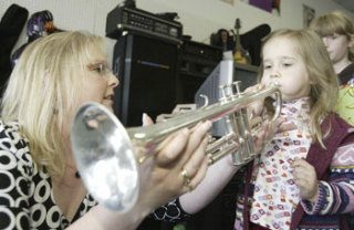 Perhaps proving that musical ability can be inherited, 5-year-old Reese Myers easily coaxed sounds from both a flute and a trumpet while most of his classmates struggled to produce anything but air.