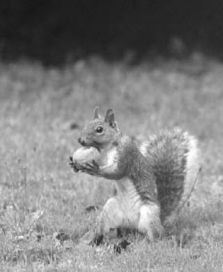 A squirrel looks for a spot to hide its walnut in a yard in Tracyton Wednesday.