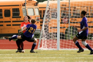 Within 12 minutes freshman midfielder/forward/defender Victoria Gerken passed the ball to sophomore midfielder Dana Van Wyck, who was about 20 yards out from the goal. The bench, anticipating the outcome, excitedly said, “Oh that’s Dana’s.” A quick and smart Van Wyck collected herself and with her left foot — she’s not a left-footed kicker — took the shot, which sailed into the right corner of the net, snagging her first-ever varsity goal.