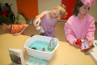 Each child stood at a table behind their book and a button. As the museum visitors strolled by and a book caught their fancy, they pressed the button to hear the child act out parts of the book in character.