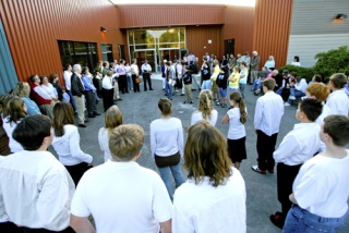 Community members gathered in 2006 for the dedication ceremony of the remodel of Poulsbo Junior High