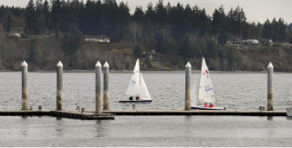 Boaters honed their skills last week at the Silverdale waterfront during a break in the rain. The spring temperatures have so far been below normal for the year.