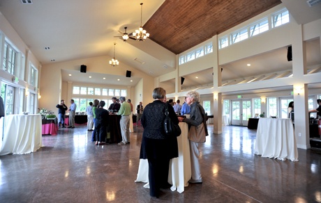 The 2,900-square-foot facility, situated on the former site of the Hotel Puget, looks out over Hood Canal and can accommodate up to 175 people in addition to the 200-seat tent. The single-story structure also includes six French doors, colored concrete floors, a floor-to-ceiling hearth and 36 windows presenting a view of the water and surrounding greenery.