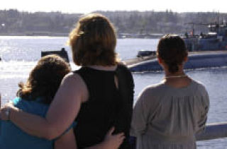 Families and friends gathered on the pier to give one last goodbye to their loved ones before their departure. Many held back tears while trying to stay positive, knowing they will see their submariner again in the spring.