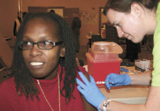 Leanna Weaver receives an inoculation for the H1N1 virus from RN Patrician Johnston