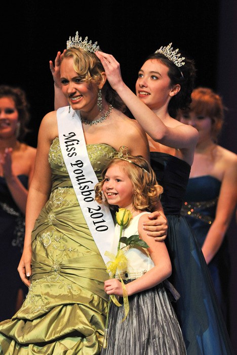Poulsbo’s Erika Scott is crowned the 2010 Miss Poulsbo Saturday during the Miss Poulsbo, Miss Kitsap and Miss Silverdale pageants. The annual event drew a record amount of scholarships, including one for $9000 to a specialty school. Miss Kitsap is Rachelle Jensen and the first Miss Silverdale is Amanda Maynard.