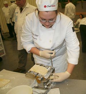 South Kitsap High School student Sarah Morris rolls out pasta during a cooking competition Saturday in West Seattle.