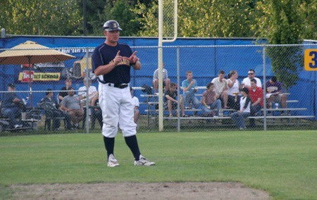 Although the coaches relay some cues from the dugout, catchers on the Kitsap BlueJackets collegiate baseball team must call pitches.