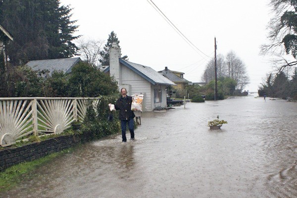 In downtown Port Orchard, A mixture of high tides and heavy rains washed into the city near Kitsap Bank’s main branch.