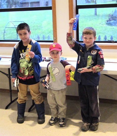 HANSVILLE — The first Pinewood Derby in Hansville drew a crowd of more than 75 people on Feb. 5, as people came to cheer for the handmade derby cars.