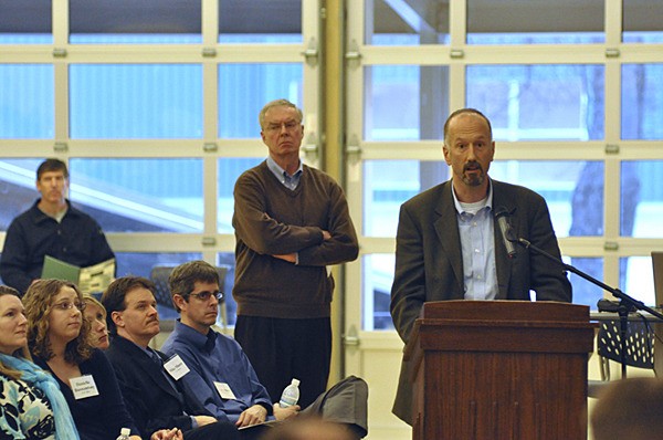 Capt. Pete Dawson, commander of Naval Base Kitsap, and several civilians involved in the project listened to comments.