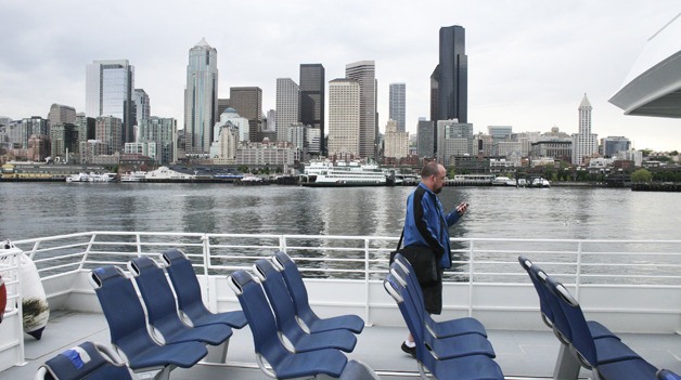 A handful of visitors boarded the ferry in Seattle Tuesday for the morning return trip to Kingston.