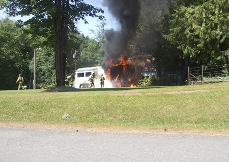 Central Kitsap Fire and Rescue firefighters helped douse a blaze that tore through an RV north of Silvedale Friday afternoon.