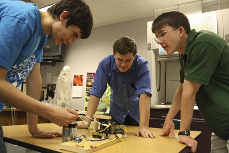 The trio learned about electrical circuits and experimental design on their own time to build their project including getting tips on circuiting and wiring from a local electrical engineer and learning how to assemble the rectifier — a device that converts alternating current to direct current — from an employee at Manette TV.