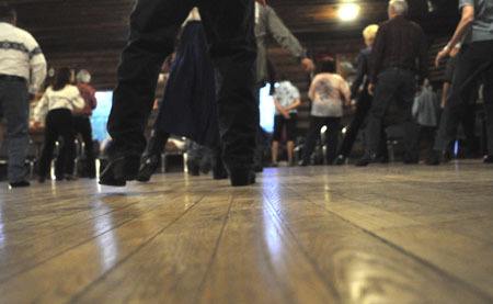 Rows of 'kickers' work the floor at Kitsap Kickers Linedance Club dance at Scout Hall in Silverdale on a recent Friday evening.