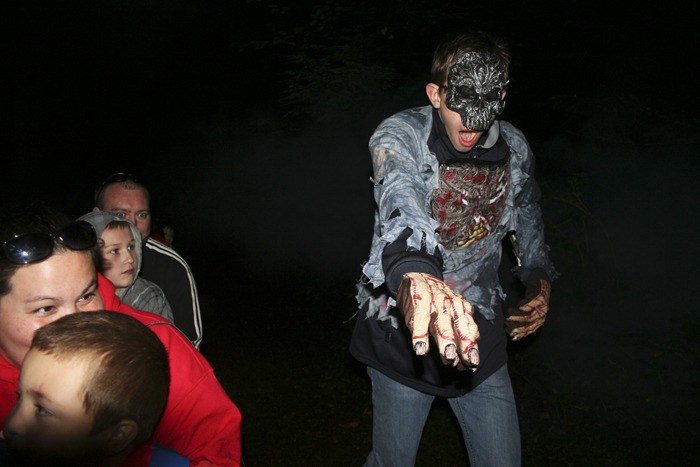 Parked cars lined both sides of Jackson Avenue as hundreds of people came to South Kitsap Regional Park for games, trick-or-treating and rides on the scale-model trains past ghoulish scenes in the woods.