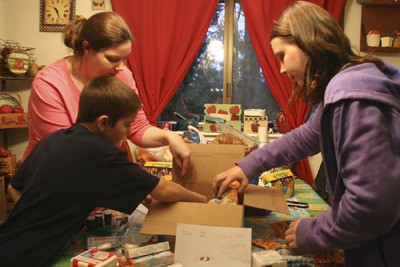 Their children Ashley, 11, and Brandon, 9, also decorate the boxes and include letters and drawings for the sailors. The last box had smiley faces drawn all over the outside and a message, “filled with love.”