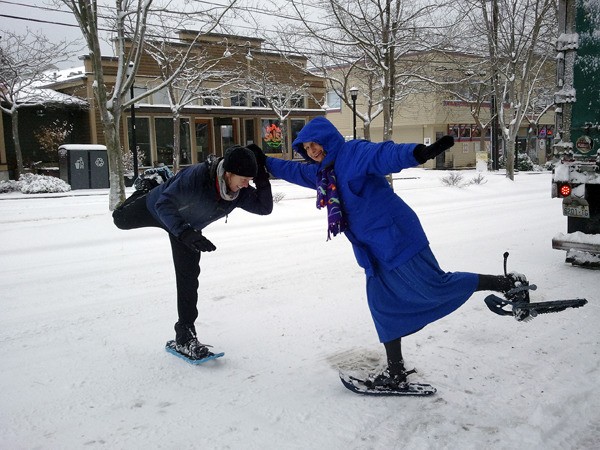 “Caught a couple ladies snowshoeing down by the ferry terminal,” the photographer emailed.