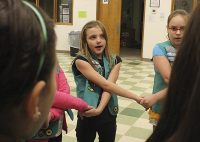 Parrish and Johnston lead their junior Girl Scout troop in a variety of activities and field trips including food drives, volunteering at retirement homes and sewing. They have plans to take the troop on a field trip to Mt. Rainier in the summer. Last Thursday evening, the troop researched different Girl Scout troops around the world to prepare for presentations that they would later give.