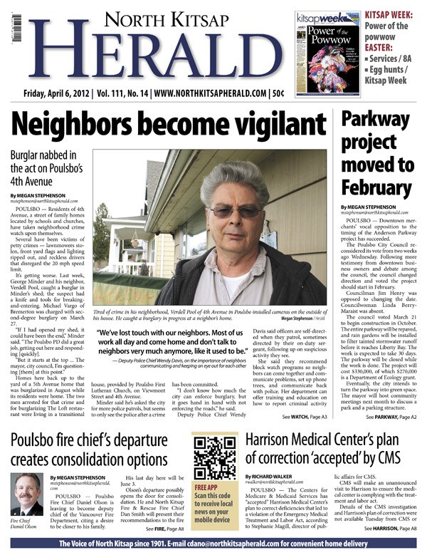 POULSBO — Crime-weary neighbors on 4th Avenue are becoming more vigilant. The Anderson Parkway project has been moved to February. Poulsbo fire chief’s departure creates consolidation options. Harrison Medical Center’s plan of correction accepted by CMS.