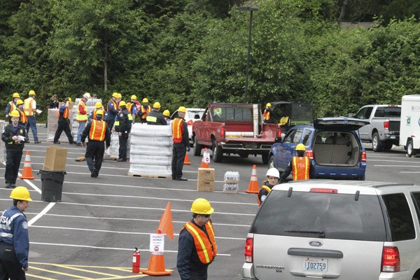 Michael Adams of the county’s Incident Management Team said the drill was to practice distributing supplies to 5,000 people after a 6.7 magnitude earthquake along the Seattle fault line.