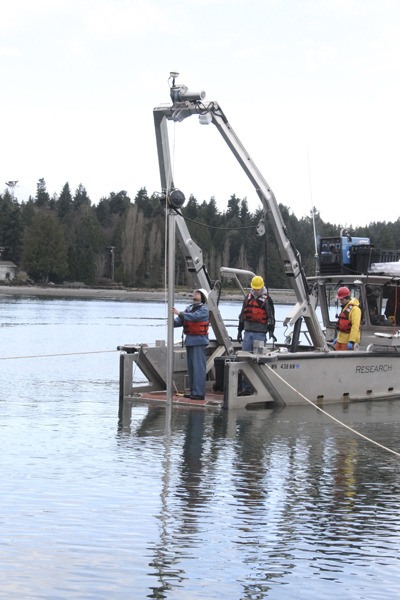 KINGSTON — Biologists with Grette and Associates test soil in Appletree Cove Feb. 25 for the Port of Kingston. The cove will be dredged in July. The Army Corps of Engineers requires testing before the dredge to see if the soil is contaminated. If the soil is clean, the port will be able to dispose of the sediment at an in-water dump site— a much less expensive process.