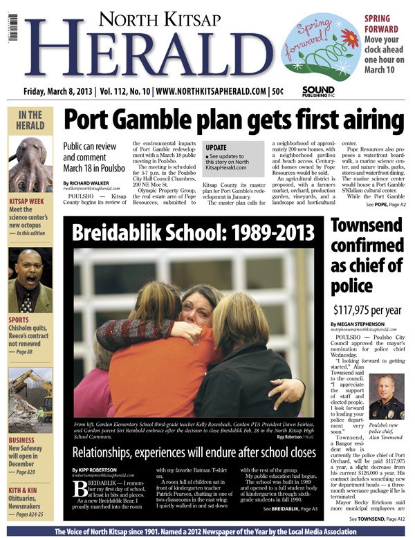 POULSBO — Port Gamble plan will get its first airing March 18. Alan Townsend is confirmed as Poulsbo’s chief of police. Breidablik Elementary School memories.