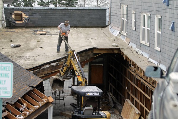 — Voodiez Bar and Grill, located at 18932 Front St. Construction workers began demolishing the former Voodiez Bar and Grill March 12, to make way for a new multi-story building with retail spaces, a garden roof and balcony. Because a wall it shared with a neighboring business remains, the demolition is considered a remodel.