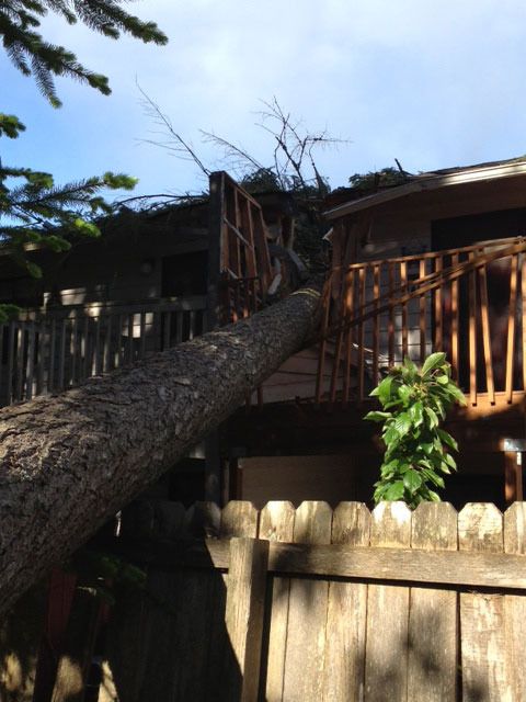 The woman, in her mid 40s, was taking a nap in the master bedroom when the wind dislodged a tall tree behind the house in the 13000 block of Lakeridge Circle NW. The tree fell onto her duplex, pinning her beneath the rubble.