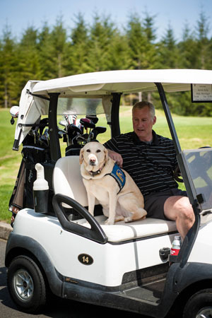 One of the reasons KHS selected Trophy Lake Golf & Casting as its tournament venue was because of Ellie, the “course dog” who passed away last year. KHS staffers were moved by the stories of Trophy Lake regulars who miss Ellie’s companionship on the course, hanging out on her favorite spot next to the water (Ellie’s Landing), strolling about with the golfers or chasing golf balls. KHS supporters Corey Sign & Display and Olmsted’s Plants, Produce & Landscaping, both of Poulsbo, donated a flagstone and custom engraving respectively, for a special remembrance to Trophy Lake from Kitsap Humane Society.