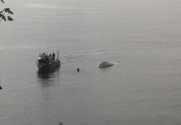 The boat’s operator told crews that he, along with his wife and grandson, had launched the boat at the nearby Port of Kingston Marina and were heading to fishing grounds when the 21-foot boat began taking on water at the stern. The man tried to bring the boat back to the marina but the situation worsened. Realizing that they were about to sink, the man turned the boat toward shore when the accumulating water apparently destabilized the craft, flipping all three occupants into Puget Sound. The man was certain that the boat’s drain plug was in place prior to launching, and noted nothing else unusual that could have contributed to the sinking.