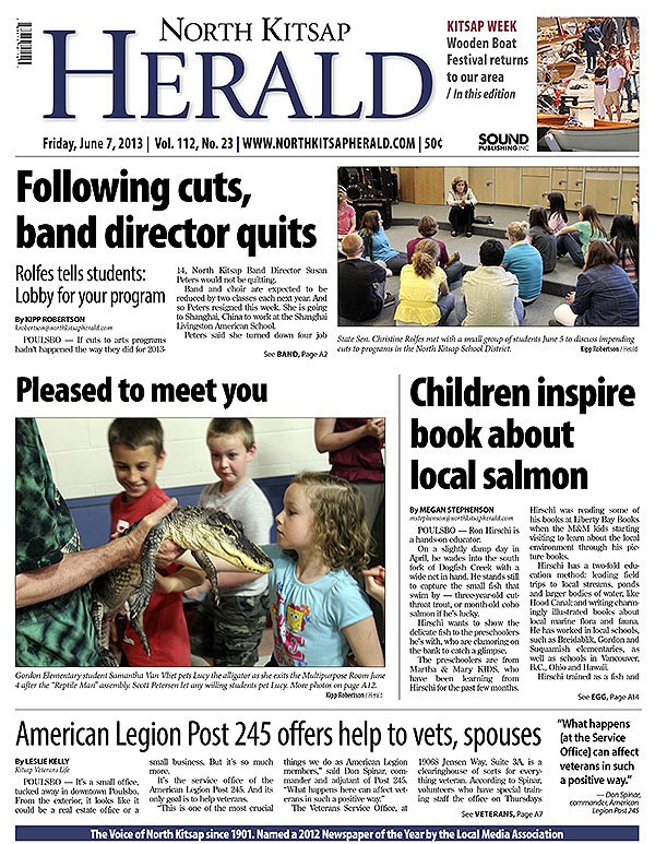 POULSBO — North Kitsap band director Susan Peters quits after cuts are proposed to the district’s music programs. Martha & Mary preschoolers inspire a book about the life cycle of the salmon. American Legion Post 245 offers help to veterans and their spouses.