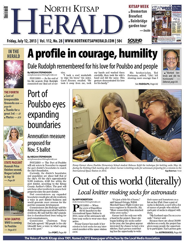 POULSBO — As the end of his life neared, Dale Rudolph committed one final act of service. The Port of Poulsbo will ask voters in November to expand the port district’s boundaries. A local knitter is making socks for astronauts bound for the International Space Station.
