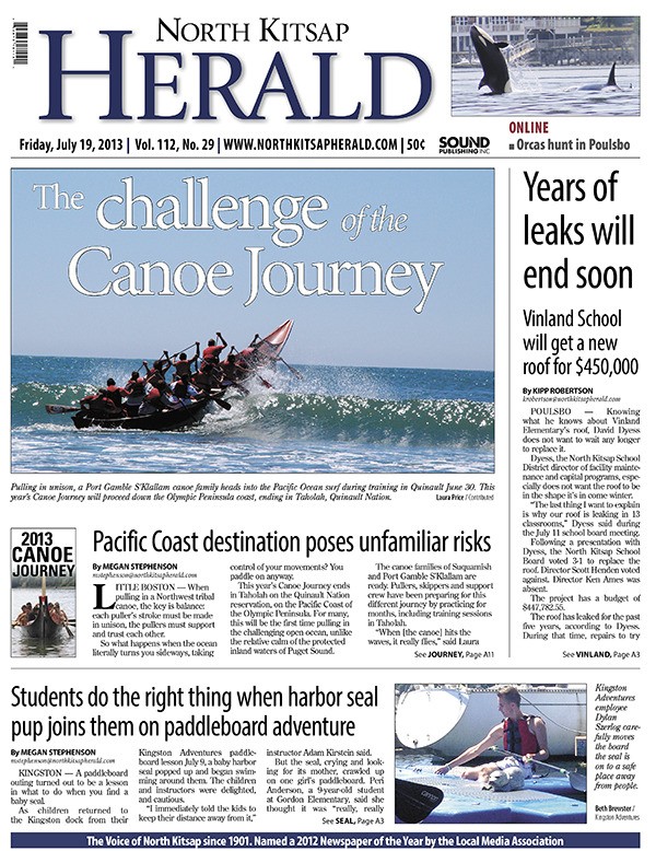 POULSBO — The Canoe Journey/Paddle to Quinault poses some unfamiliar risks for young pullers. Vinland School will soon have a roof that doesn’t leak. Students do the right thing when a seal joins them on a paddleboard.