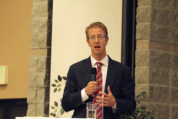 Kilmer spoke at the Aug. 14 monthly Greater Poulsbo Chamber of Commerce luncheon, where he told the “good, bad and ugly” about the nation’s issues, and answered questions.