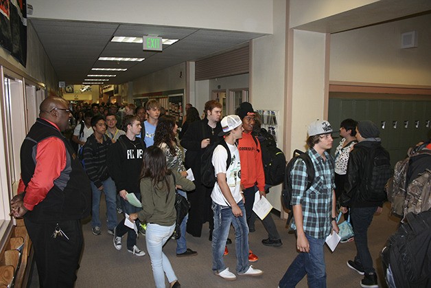 Students at Central Kitsap High School swarm the halls during the first day back to school. Rick Haskins