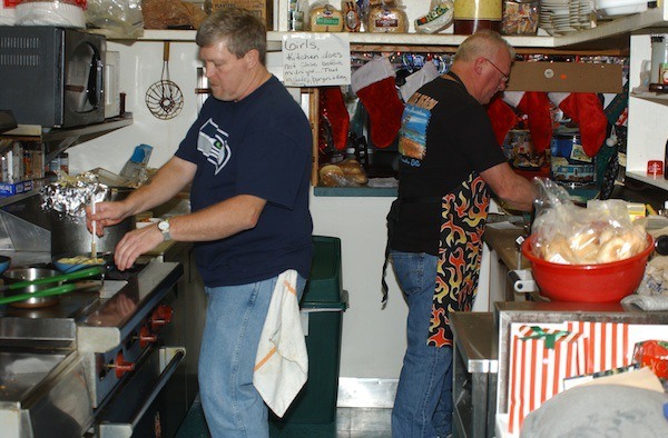 The night before the breakfast, Hi-Tide was the scene of another event — the Hi-Tide Christmas Party — to help raised money for South Kitsap Helpline. Guest bartenders served customers and all the tips went to the organization. “We haven’t counted all