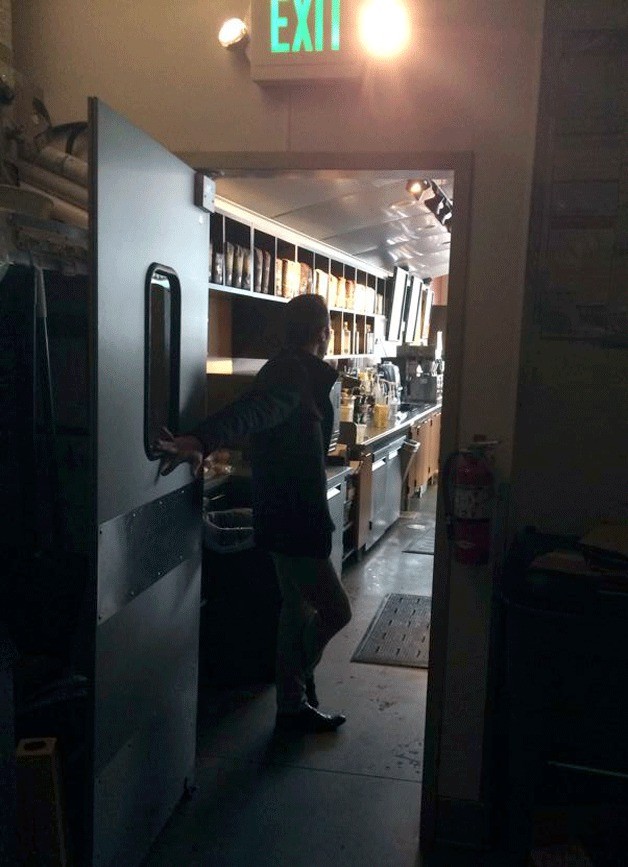 Baristas at the Starbucks on Olhava Road wait for power to return on the morning of Jan. 14.