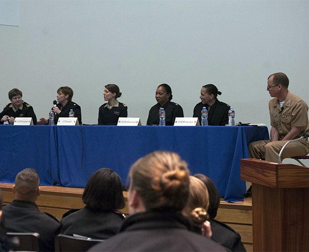 The symposium included a Women and Leadership at Sea panel discussion which gave service members the opportunity to ask senior leaders about on various topics such as the challenge of being a female in a male dominated rate and pregnancy on sea duty.