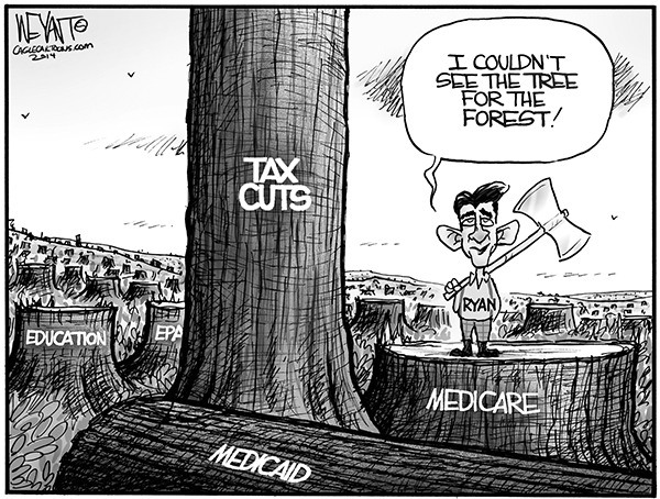 This week's cartoon deals with the budget cuts at the Federal level.