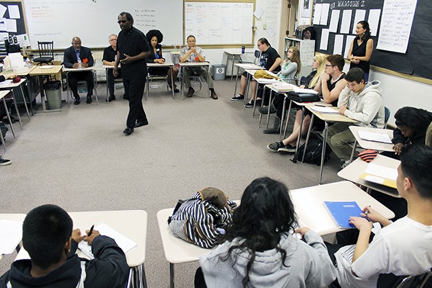 CKHS Teacher JD Sweet talks with students about asking questions of community leaders who visited the American Studies class on Monday. The two-hour classroom event was to encourage the students about their futures.
