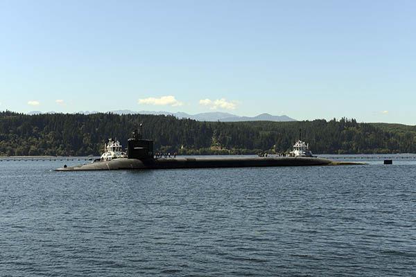 USS Alabama (SSBN 731) returns home to Naval Base Kitsap-Bangor following a strategic deterrence patrol. Alabama is one of eight ballistic missile submarines stationed at the base providing the survivable leg of the strategic deterrence triad.