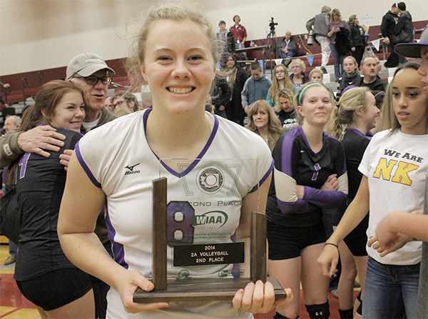 POULSBO — It took the 2A state volleyball champions to finally break the North Kitsap Vikings’ unbeaten record.