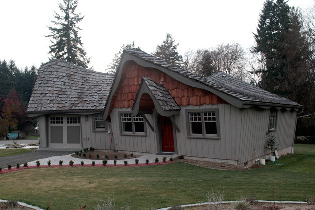 The Hobbit House has been constructed over the past few years on Bainbridge Island’s High School Road. It is now complete and owner Chris Whited plans to rent it out as a vacation rental for island visitors. It includes fairy tale-styled roofs and a working waterwheel.