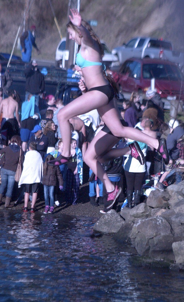 Several hundred people — of all ages — took part in the annual Olalla Polar Bear Jump on Jan. 1 at the Olalla Bay Bridge. Temperatures were around 40 at the noon start.