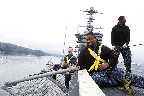 Photographer Genna Martin of the Daily Herald in Everett joined the crew of the John C. Stennis as the ship traveled north from Naval Base Kitsap in Bremerton to Naval Magazine Indian Island to pick up munitions before heading to San Diego for training, Jan. 12. Here is a slideshow of her photographs.